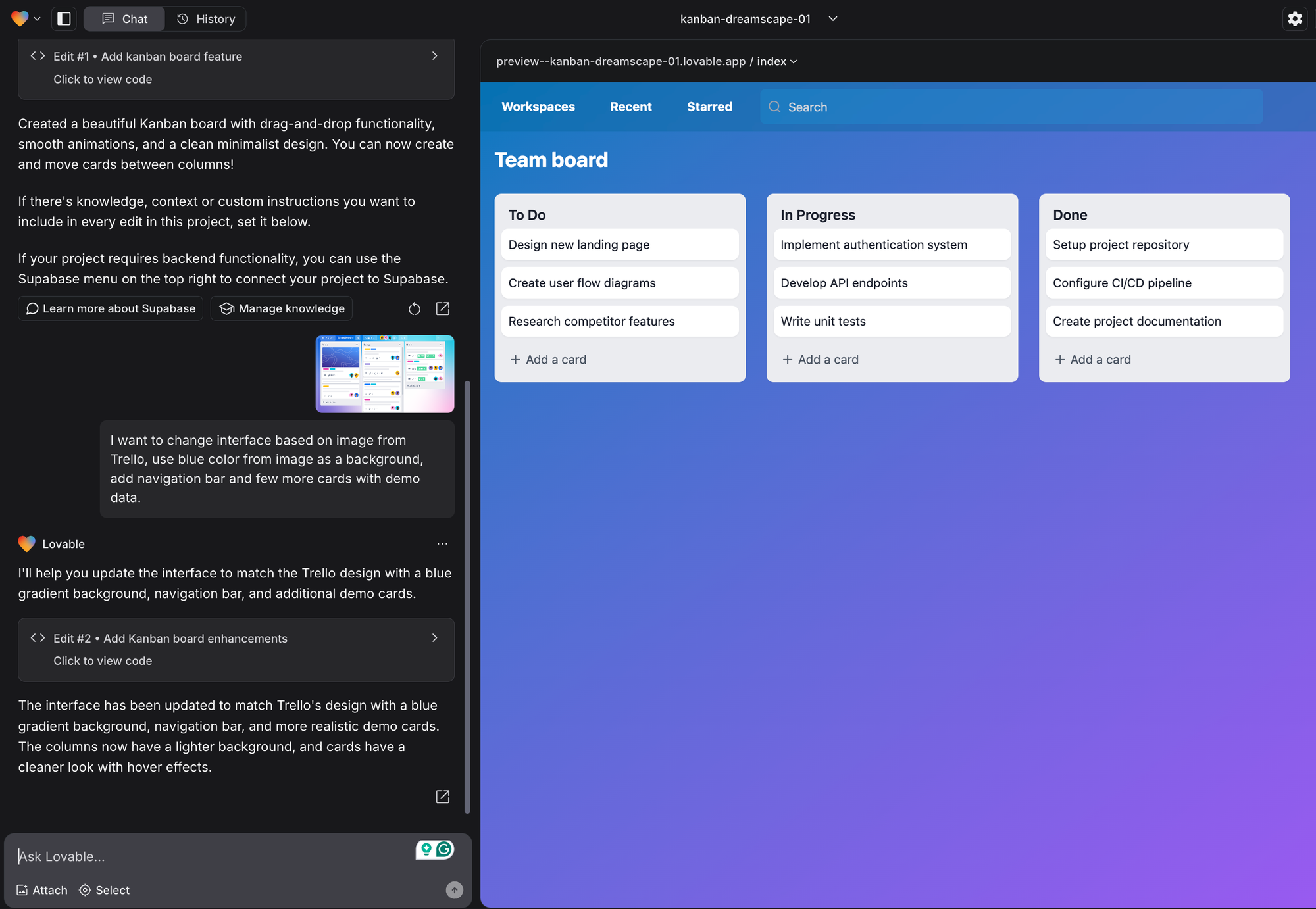 Lovable tutorial: complete AI chat app that uses @supabase for the backend and @OpenAI for generating responses