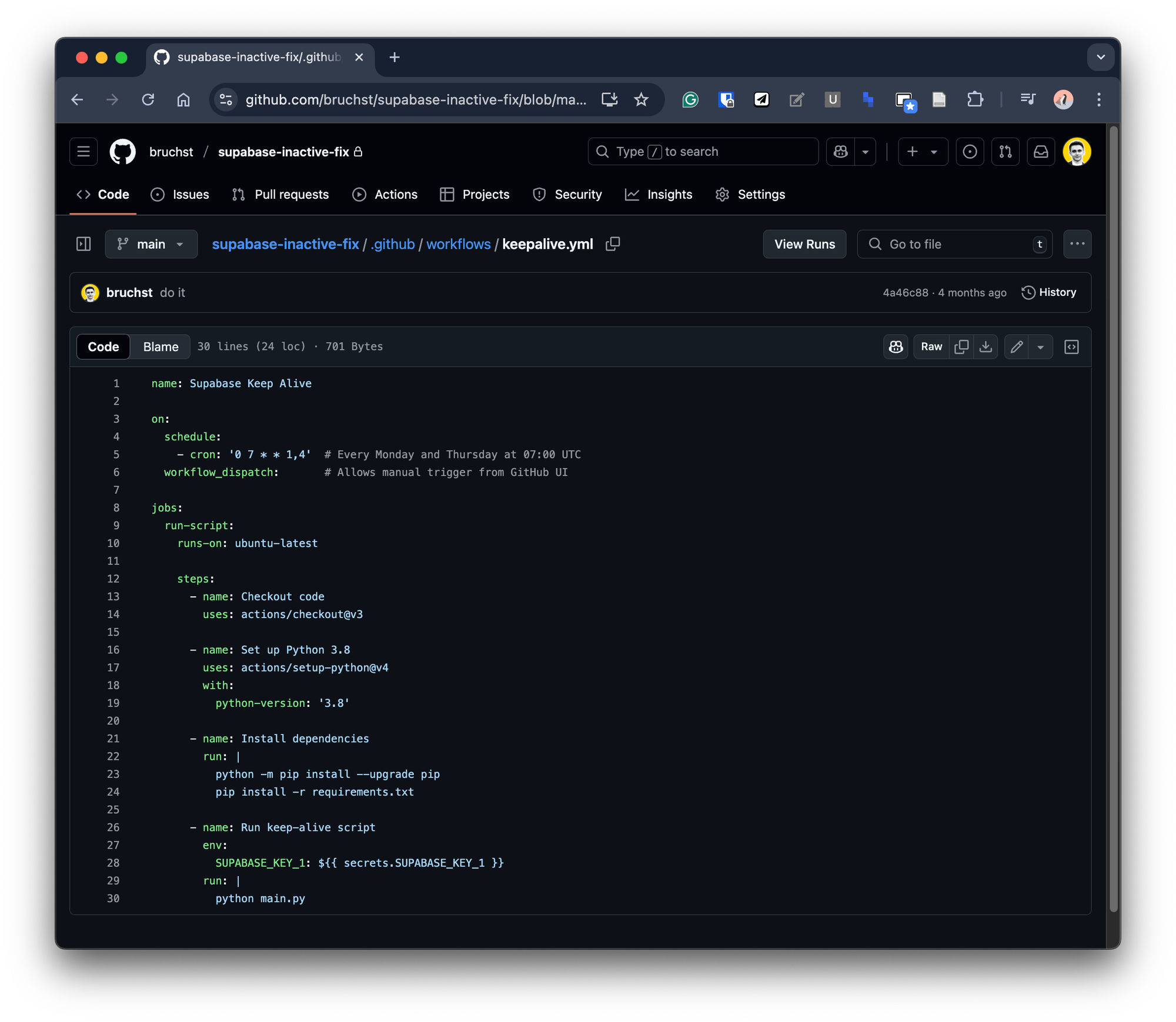 Máte dvě možnosti: buď si Supabase předplatíte nebo existuje trik, jak pomocí GitHub Actions nečinnost projektu vyřešit.
